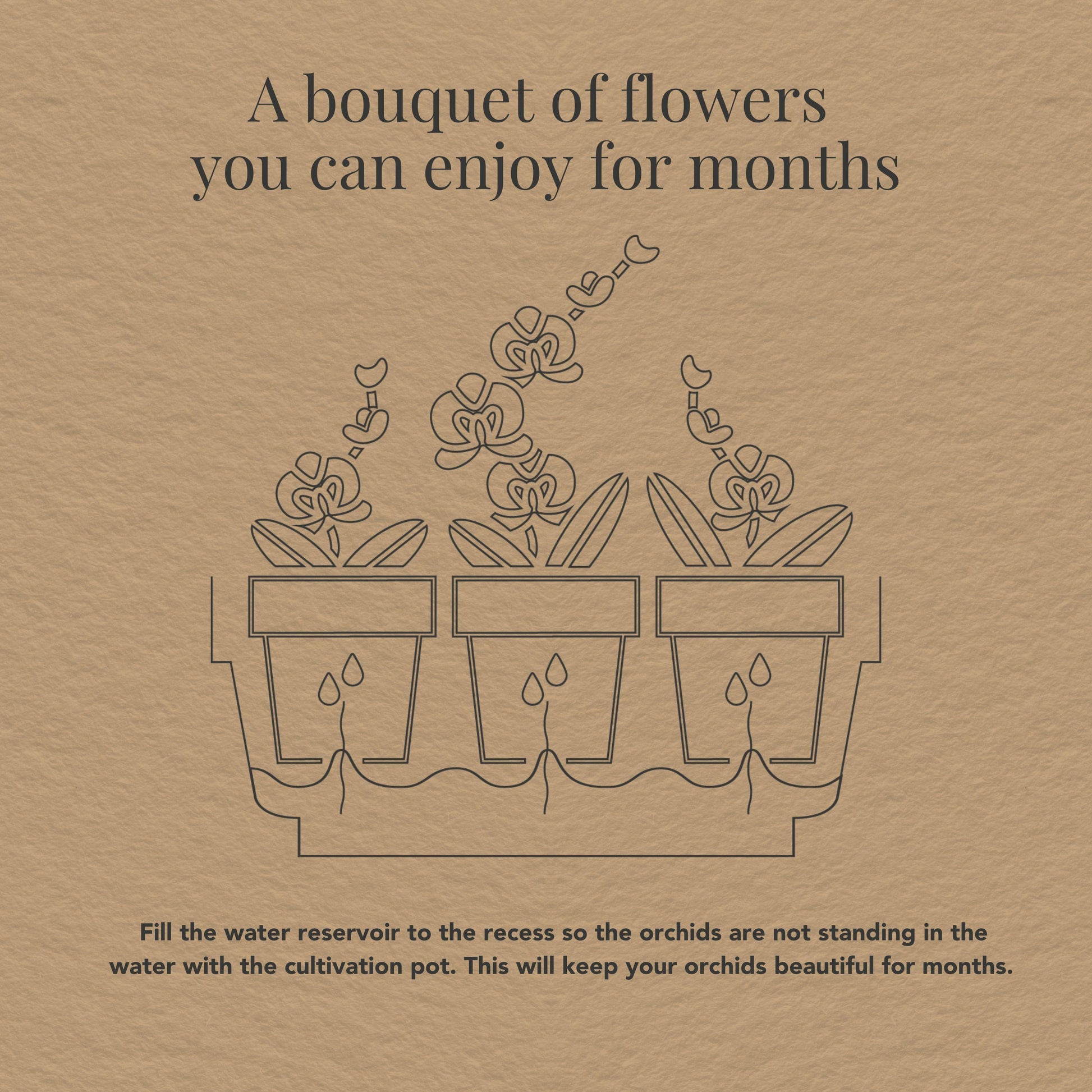 1 Jahr lang werden unsere Orchideen vom renommierten Züchter Kolibri Company in den Niederlanden gehegt und gepflegt, bis sie sich schließlich in voller Schönheit auf den Weg zu Ihnen nach Hause machen können.