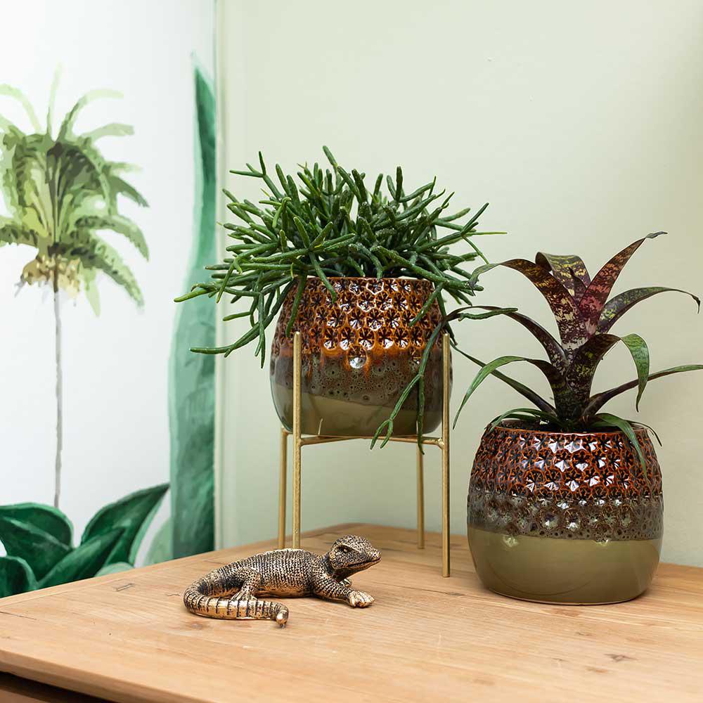 Möchtest du deinen Pflanzen einen edlen Look verleihen? Mit unserem eleganten Metallfuß hebst du deine Pflanzen auf ein neues Niveau. Mit einer Höhe von 18,5 cm und einem Durchmesser von 14 cm kannst du flexibel mit der Höhe deiner Pflanzen spielen und eine stilvolle Atmosphäre in jedem Raum schaffen. Wähle zwischen einer Höhe von 11 cm oder 7,5 cm und passe die Erhöhung perfekt an dein Interieur an.